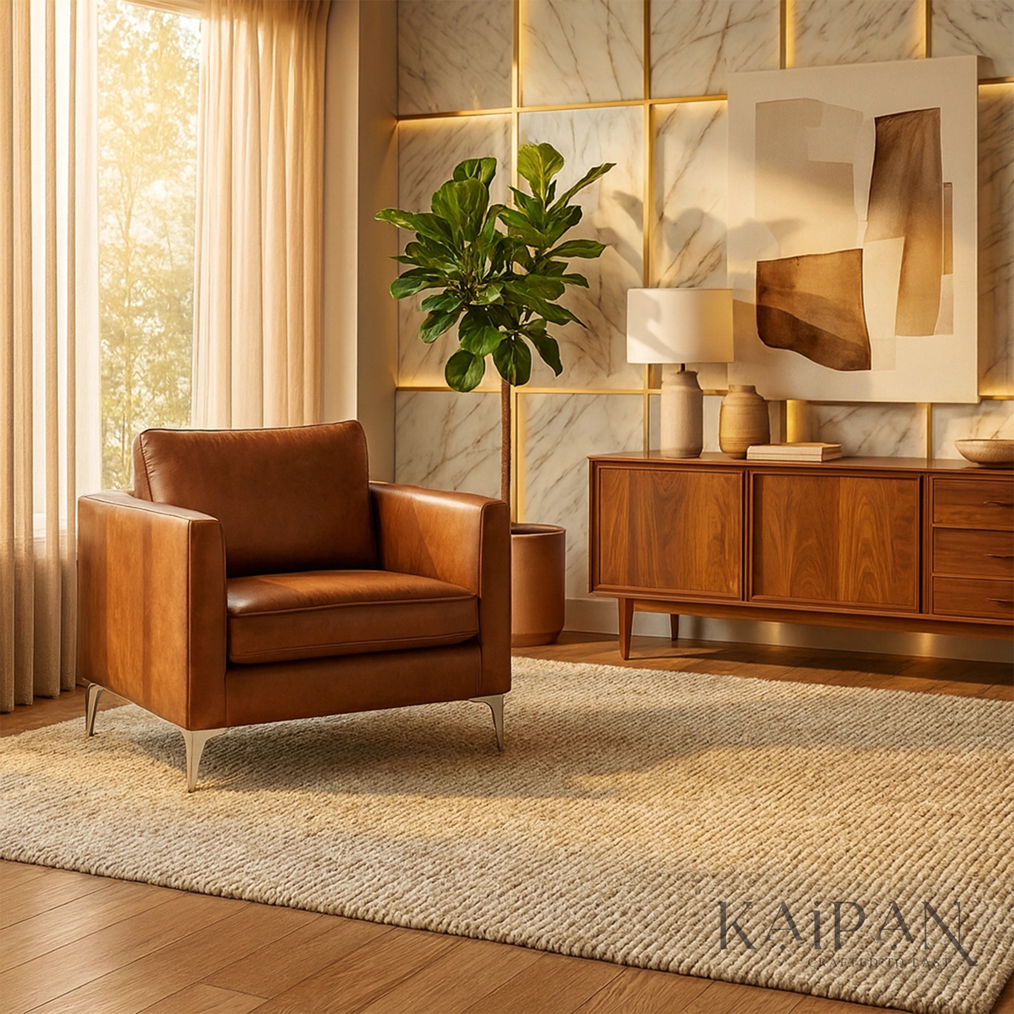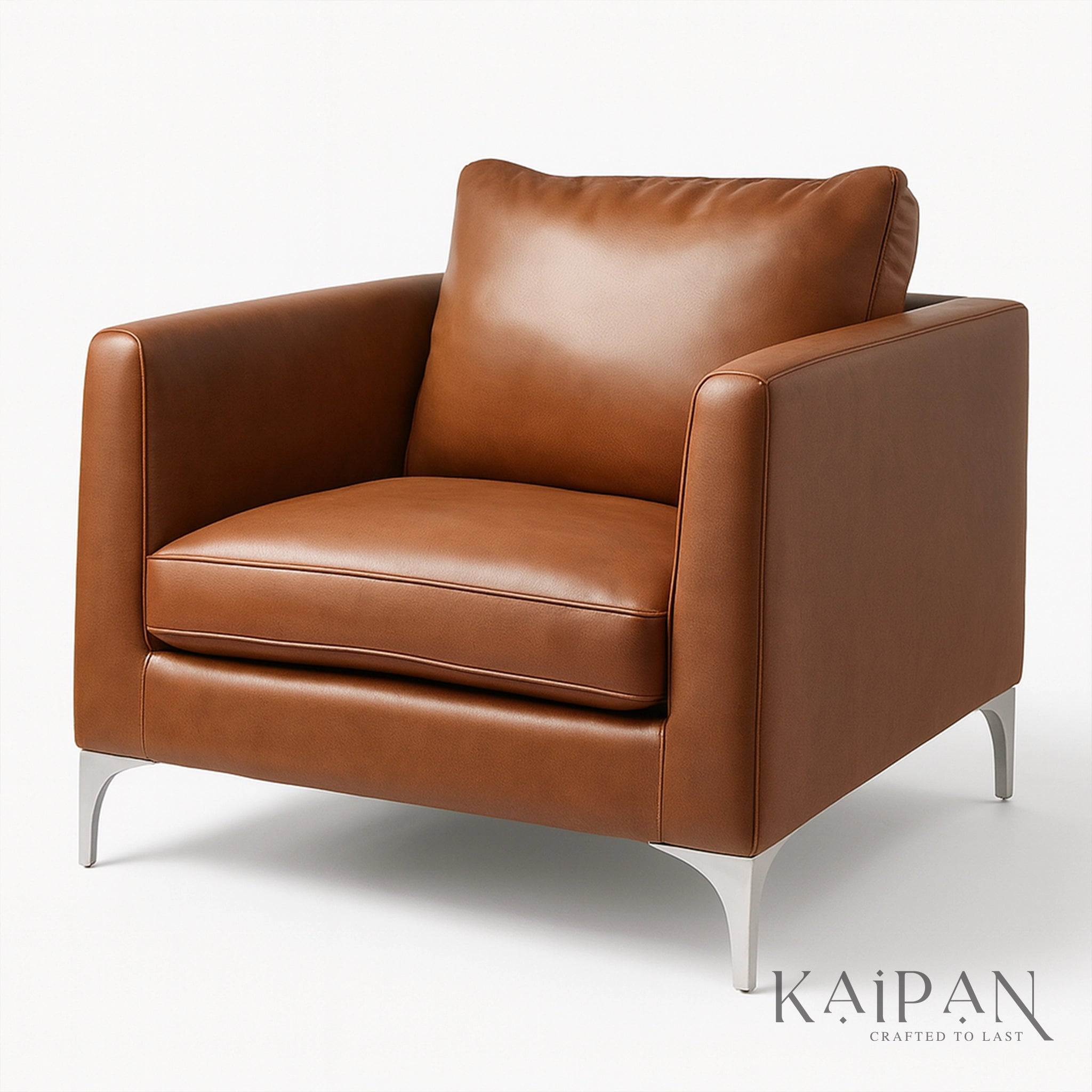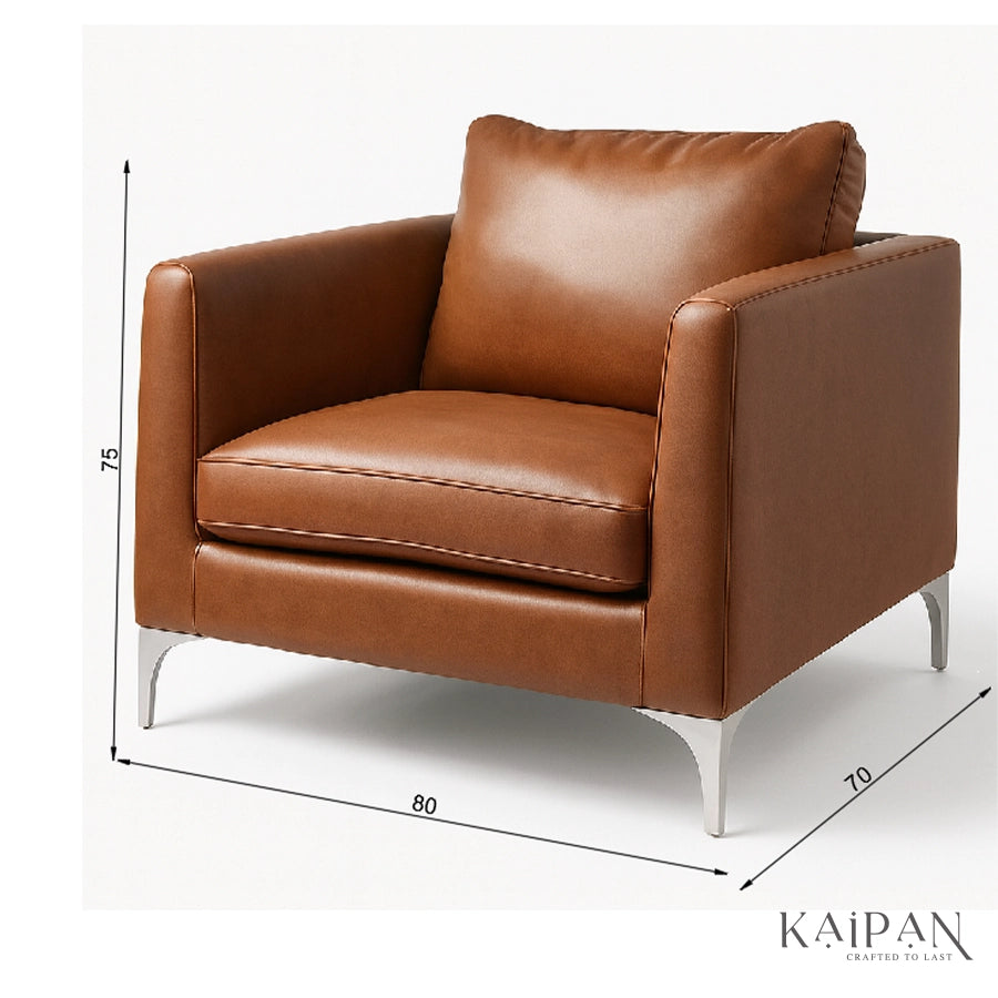 This modern leather armchair combines timeless elegance with everyday comfort, making it a refined addition to contemporary interiors. Upholstered in rich, premium leather, it features a generously cushioned seat, supportive backrest, and structured armrests for relaxed seating. Finished with sleek metal legs for a modern touch, this armchair is ideal for living rooms, offices, or lounge spaces, adding warmth, durability, and understated luxury to any setting.