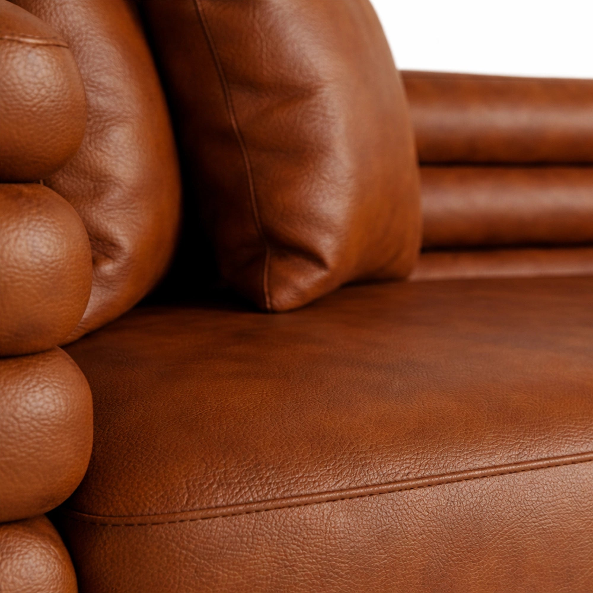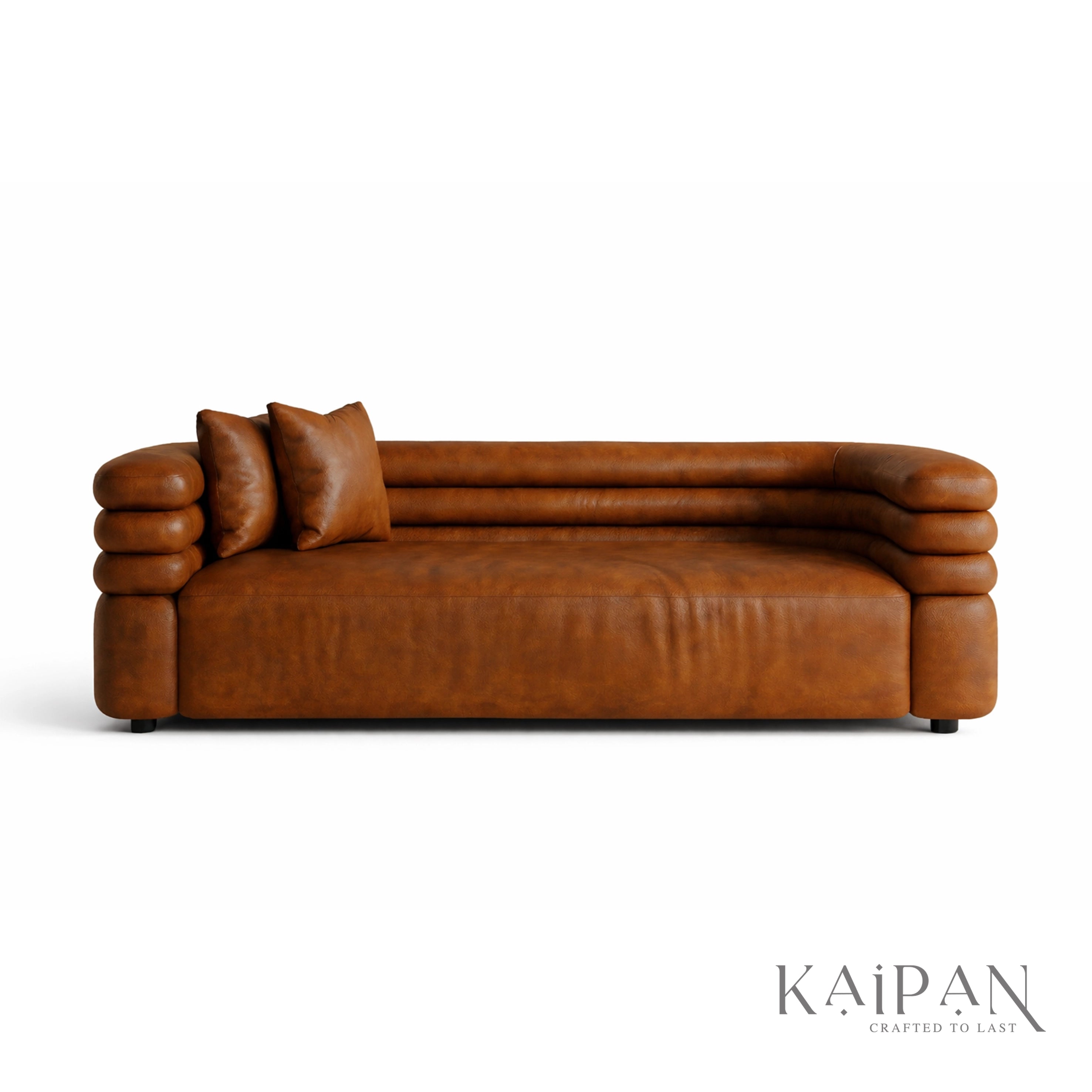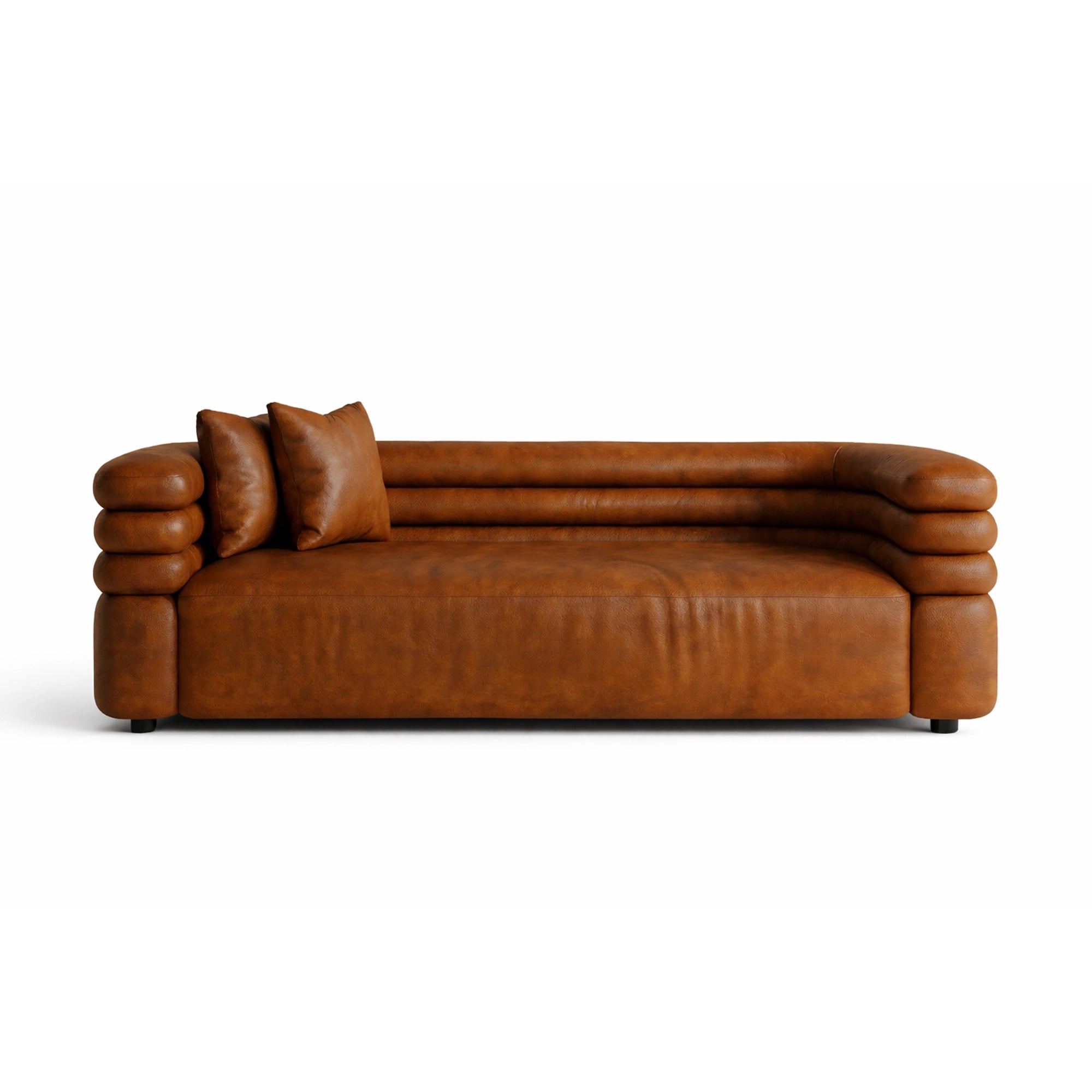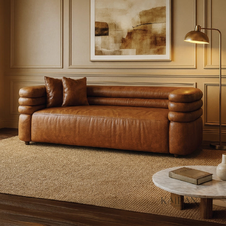 - Distinct layered armrests with rounded, cushioned detailing