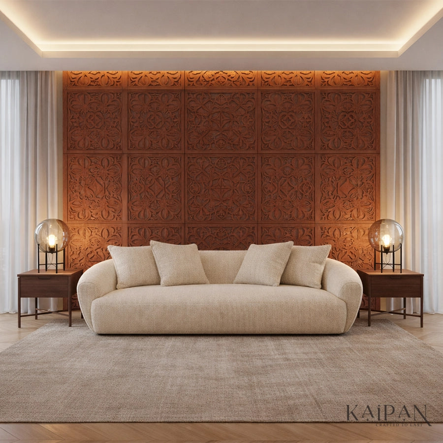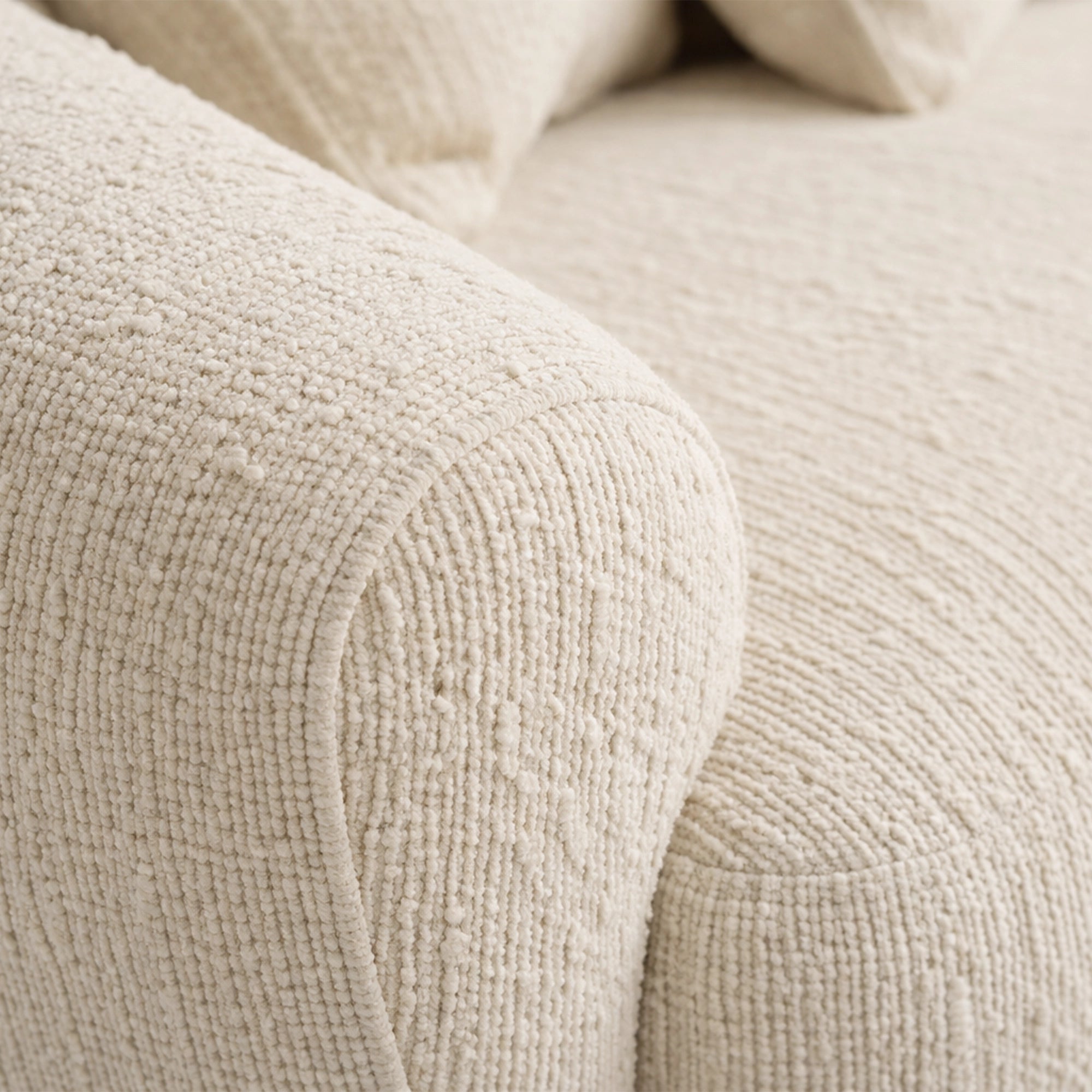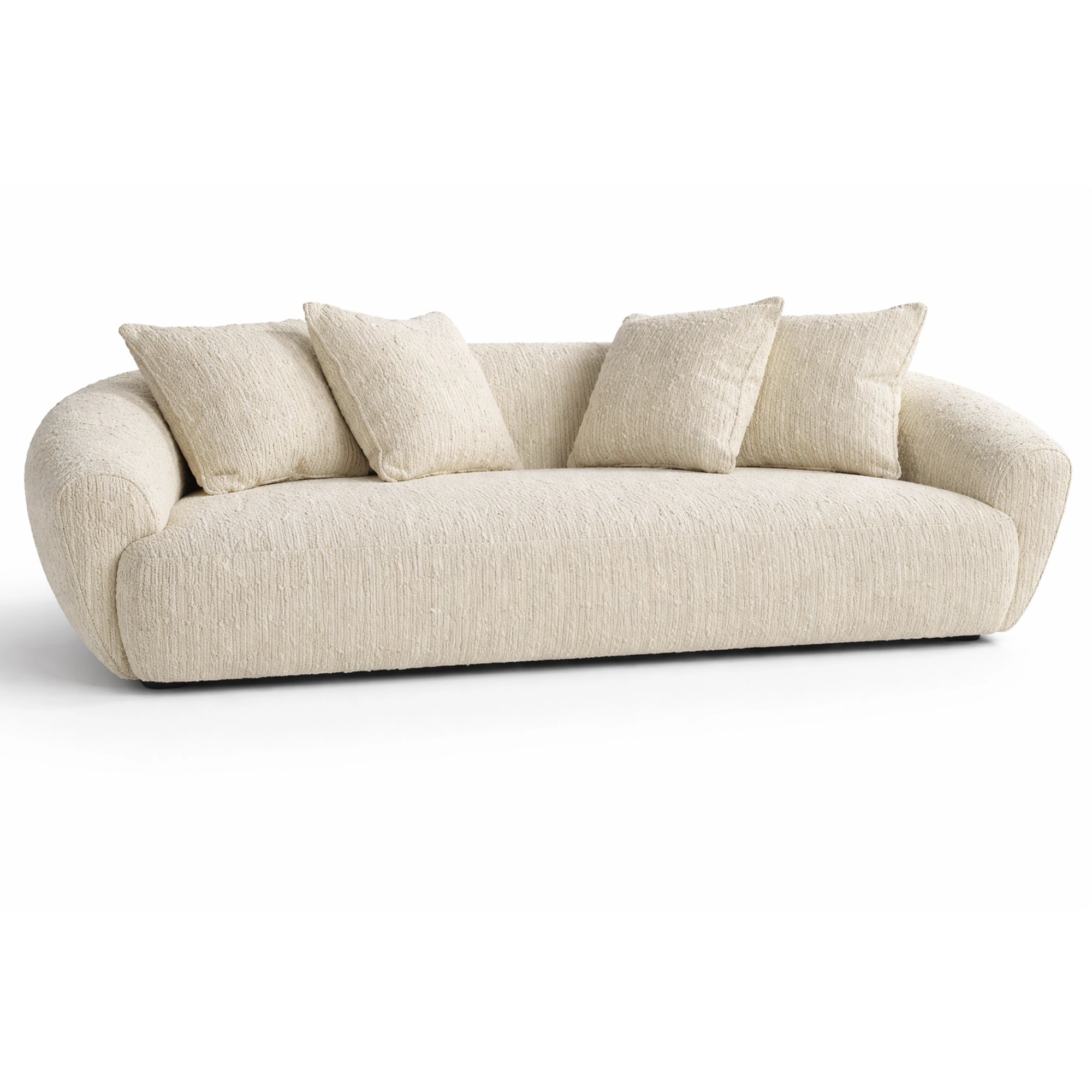 This sofa is a modern sculptural sofa designed to bring effortless luxury and comfort into contemporary living spaces. Featuring a soft, rounded silhouette with seamless curves and a low-profile form, this sofa creates a calm and inviting visual presence. Upholstered in a premium textured fabric in a warm neutral tone, it offers a cozy yet refined feel that blends easily with any interior palette. Deep seating and plush back cushions provide cloud-like comfort, making it ideal for relaxed lounging, while the minimalist design and concealed base enhance its elegant, designer appeal, perfect for living rooms, luxury apartments, and statement interiors.