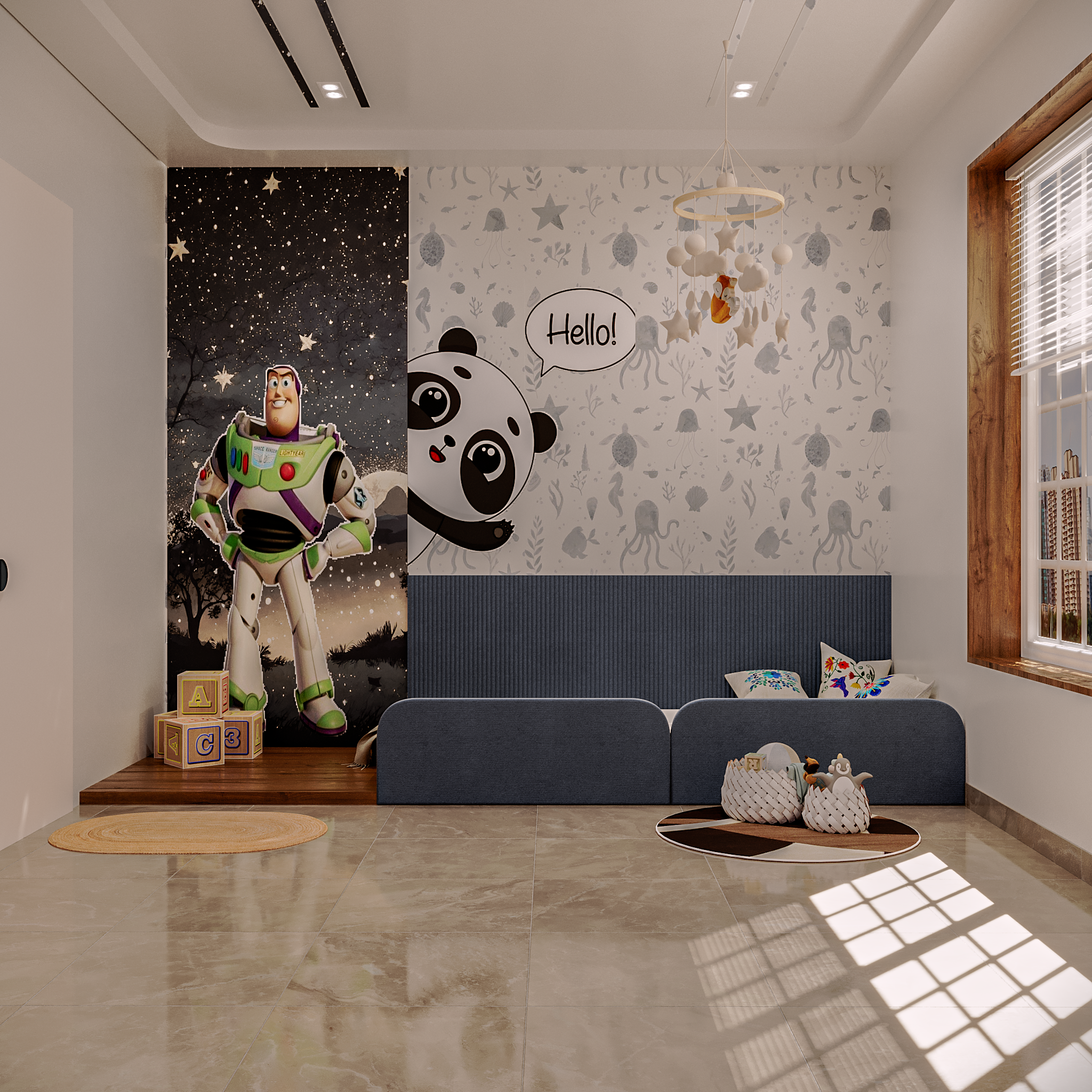 The Zeno Room Set is a fun and imaginative kids’ bedroom concept designed to spark creativity while maintaining comfort and style. This thoughtfully curated set includes a cozy bed designed for everyday comfort, playful wallpapers in two unique designs that bring storytelling and character into the space, stylish blinds that softly control natural light, and  warm rugs that adds comfort for playtime and relaxation. With its vibrant yet balanced design, the Zeno Room Set creates an engaging and joyful environment where children can play, rest, and dream freely . perfect for modern family homes that value creativity and comfort.