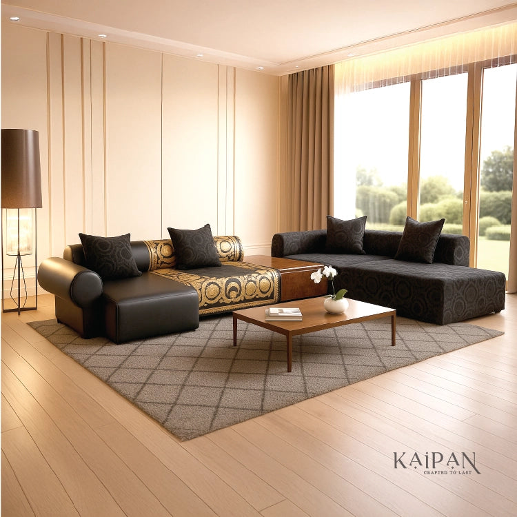 This sectional sofa combines bold contrast with a modern, structured design. Featuring plush seating, layered cushioning, and striking accent details, it adds depth and character to contemporary living spaces. Designed for comfort and visual impact, it creates a confident and stylish centerpiece for everyday lounging.