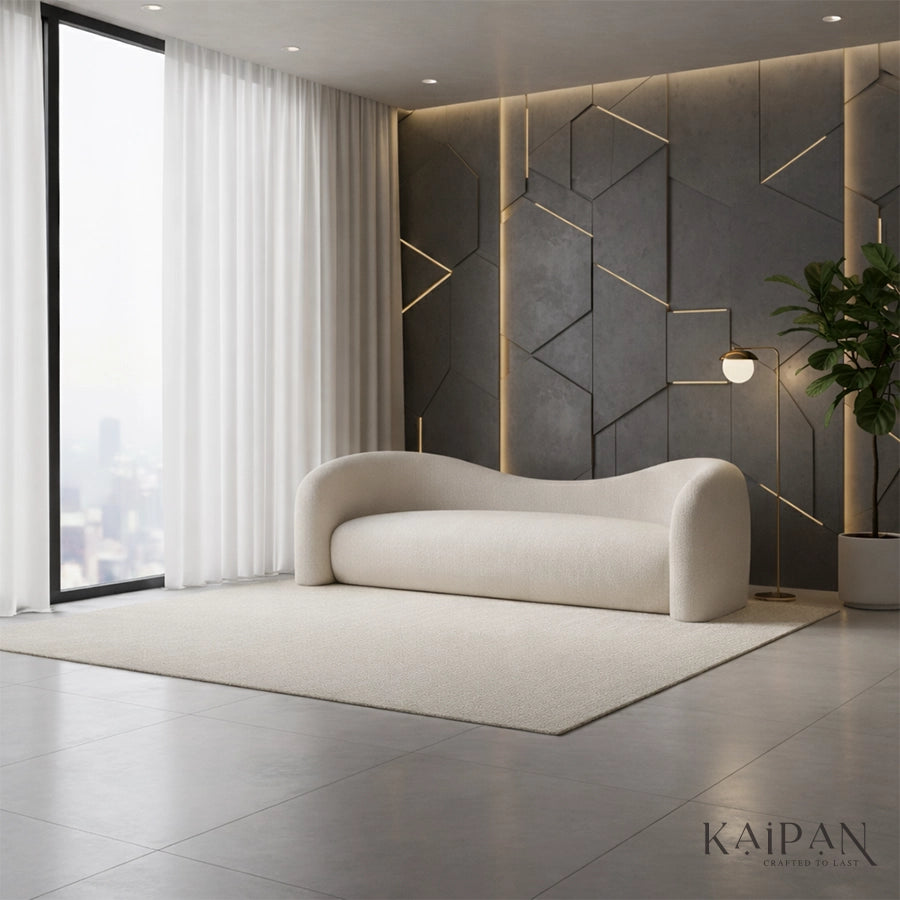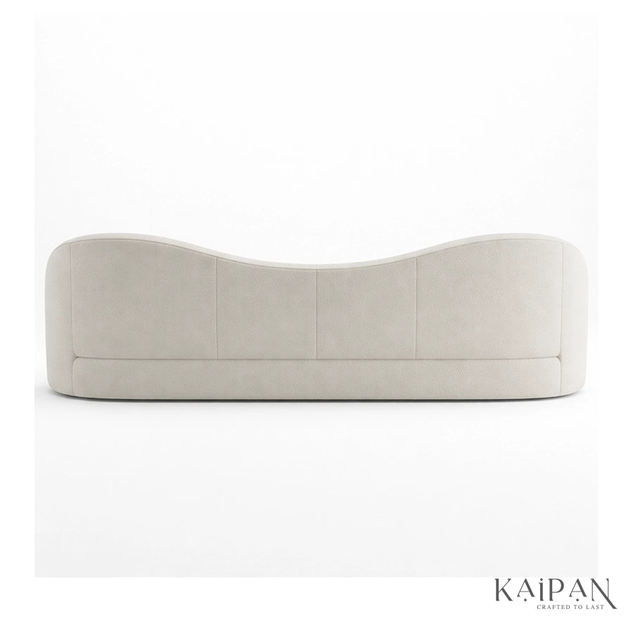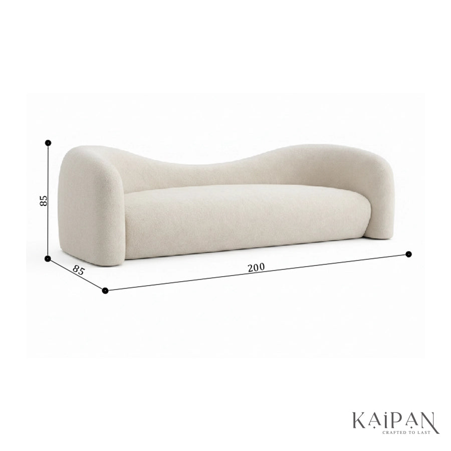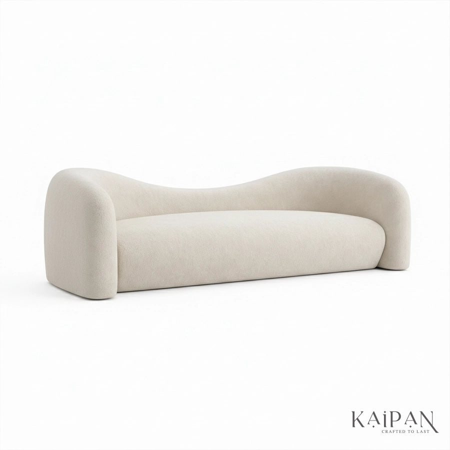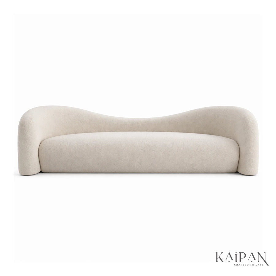 This contemporary sofa features a fluid, sculptural silhouette with softly curved armrests and a seamless, low-profile design. Upholstered in a smooth, premium fabric, it offers a generously cushioned seat that provides relaxed comfort while maintaining a refined, minimalist look. Its elegant form and balanced proportions make it an ideal statement piece for modern living rooms, lounges, or designer interiors, adding a sense of softness, sophistication, and timeless modern appeal to any space.