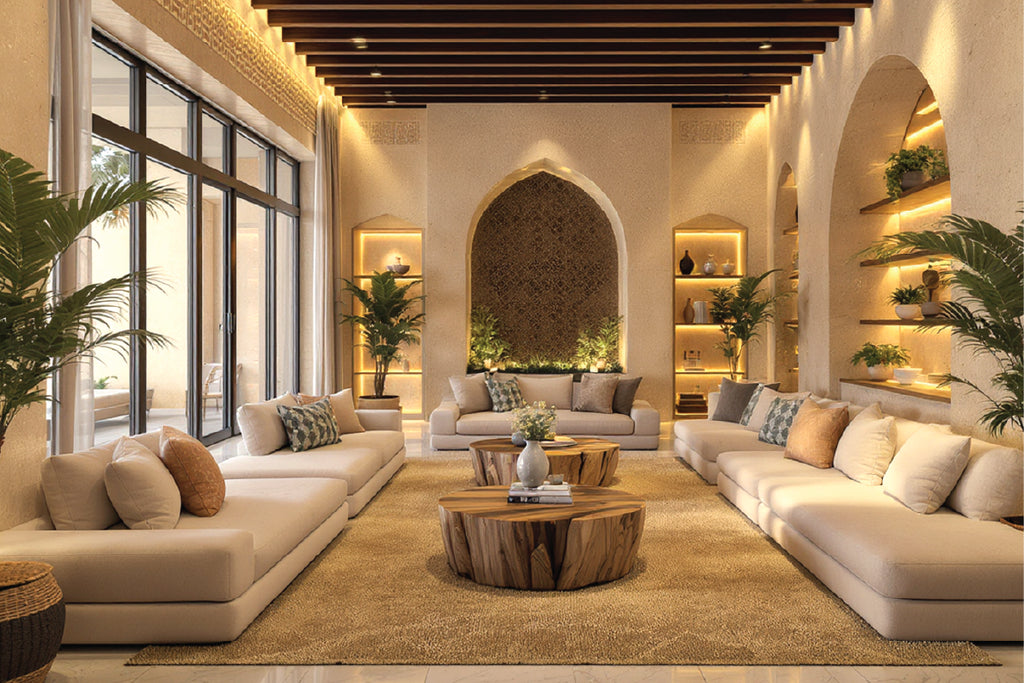 - Majlis Sofas – Traditional Arabic seating with luxurious detailing and rich fabrics.
